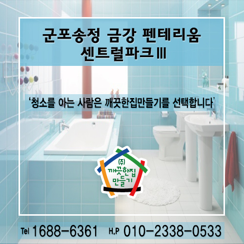 군포송정 금강 펜테리움 센트럴파크Ⅲ 입주민여러분들께 공지사항 올립니다. 반갑습니다 여러분들 ^^~ 저희 깨끗한집 만들기에서 이번에 군포송정 금강 펜테리움 센트럴파크Ⅲ에 입주민들을 위한 입주청소 특별 패키지로 찾아왔는데요! 다들 설레는 군포송정 금강 펜테리움 센트럴파크Ⅲ에 입주 잘 준비하고 계시나요? 간혹 설렘으로 인해 성급해져 사소한걸 놓치는 경우가 많은데요~ 그런 사소한 점들을 깨끗한집 만들기에서 먼저 채워드리겠습니다ㅎㅎ